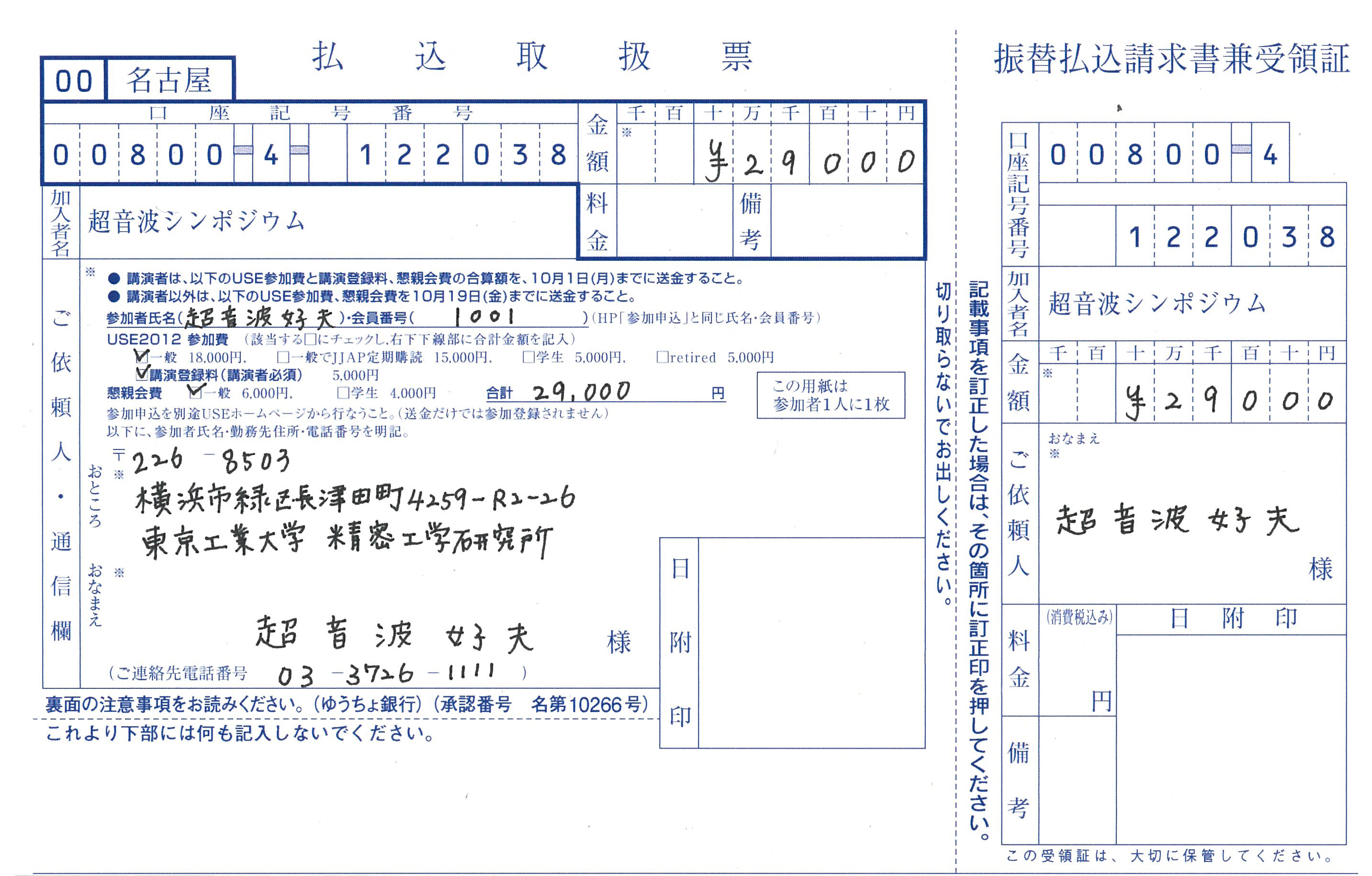 参加費・講演登録料のお支払いの際、1名ごとに1枚の振込用紙をご使用下さい。1枚の振込用紙で複数人分のお振り込みを行わないようお願いいたします。参加者氏名は必ずお書きください。 講演しない場合も会員番号を記入して下さい。 会社などの機関からお支払いの場合、通常参加者と支払いご依頼人が別の方になり、参加者氏名の記入がない場合支払いの確認が困難となります。